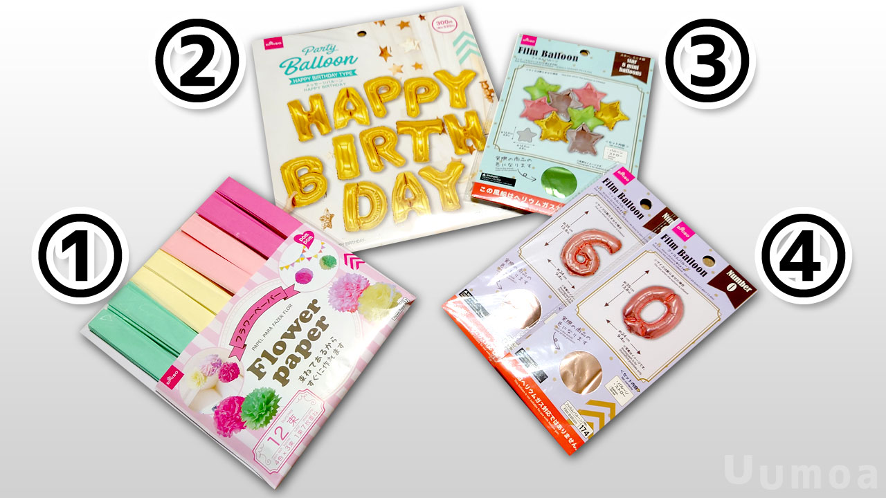 | ④数字バルーン6と0 | 各110円=220円(税込) |