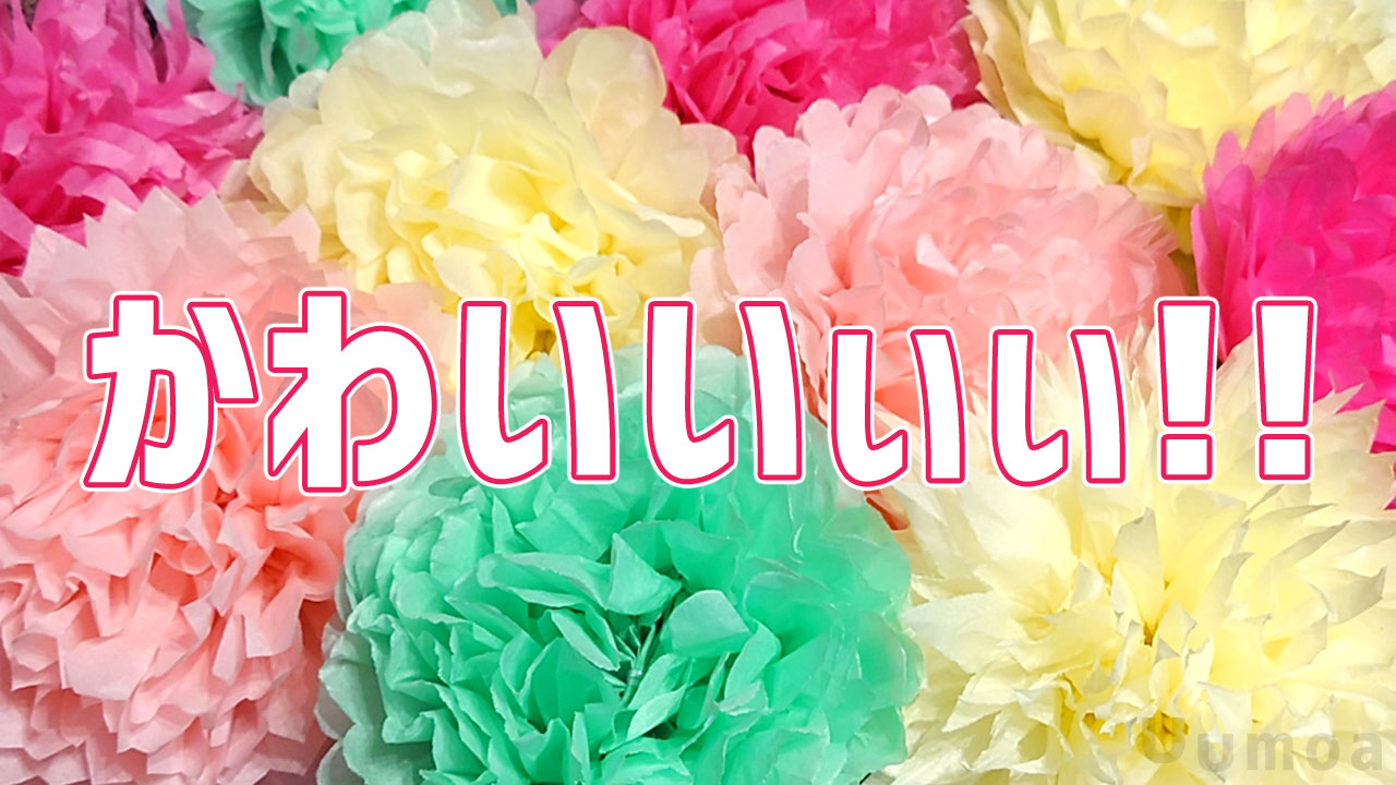 まずは紙のお花から作ります!グリーン、イエロー、薄いピンク、濃いピンクの合計4色が各3本ずつ入ってたよ!学生の時に紅白のやつ作ったなー