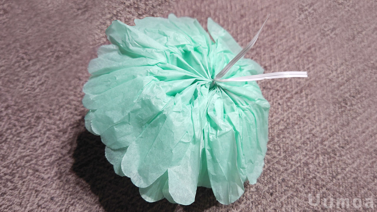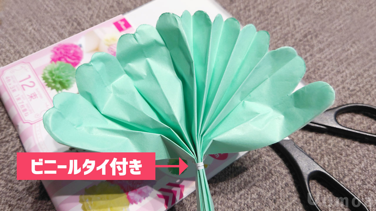 完成した花の裏面はこんな感じ!ビニールタイのおかげで飾りやすそう!残りの花も一気に作るぞー!